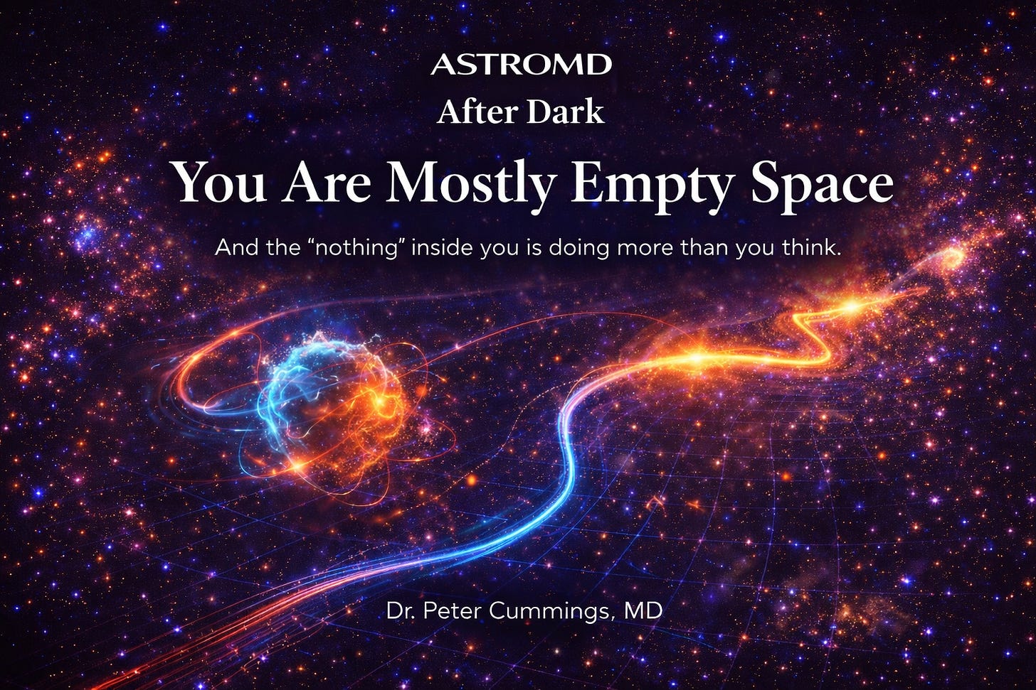 You are an extended, highly organized pattern written across space. The apparent emptiness inside you is not absence but possibility, the room required for the laws of the universe to assemble matter into something capable of observing itself.